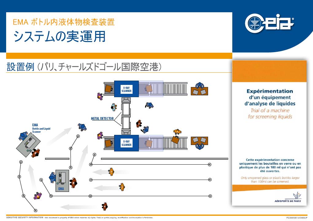 ![]() ┃商品概要商品説明飲料容器の中に含まれるガソリンなど可燃性、引火性および爆発性液体を発見する 未開封および開封済みボトルの正確で素早い検査が可能 空港や官公庁、イベント会場など重要施設の入場管理に利用する 仕様寸法:450mm×317mm×330mm/プローブ無し寸法:545mm×317mm×330mm/プローブ付き 重量:17kg/プローブ無し 重量:17.5kg/プローブ付き 電源:AC100V〜240V 測定対象:市販のペットボトル及びアルミボトル等飲料容器 応答速度:容器挿入後5秒以内 主な特徴●未開封および開封済みボトルの正確で素早い検査が可能 ●明確な「OK/Attention」の検査結果の表示 ●ボトルを開封せずに5秒以内で自動解析 ●サンプリングにより液体を解析するオプションの外付プローブ (タイプA) ●コンパクトサイズで人間工学的に配慮されたデザイン ┃導入実績・今日までに4000台以上のEMAが空港アプリケーション用として無事納品設置されました。 ・国内では成田国際空港および羽田国際空港に導入されています。 ┃システム実運例 |
